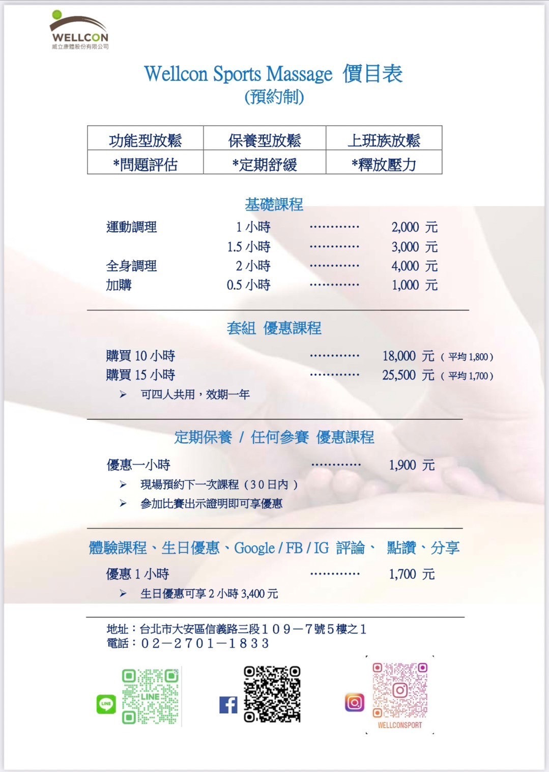 • 按摩項目與收費